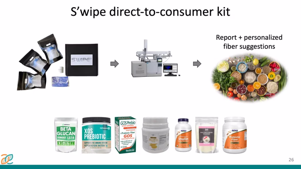 We shared data from a 500-participant study conducted at the University of Connecticut evaluating the S’Wipe collection approach, a simple, room-temperature stable method designed to facilitate sample collection and handling. The presentation covered quantitative analysis of short-chain fatty acids (SCFAs) and bile acids, key metabolites linking gut microbiome activity to chronic disease.